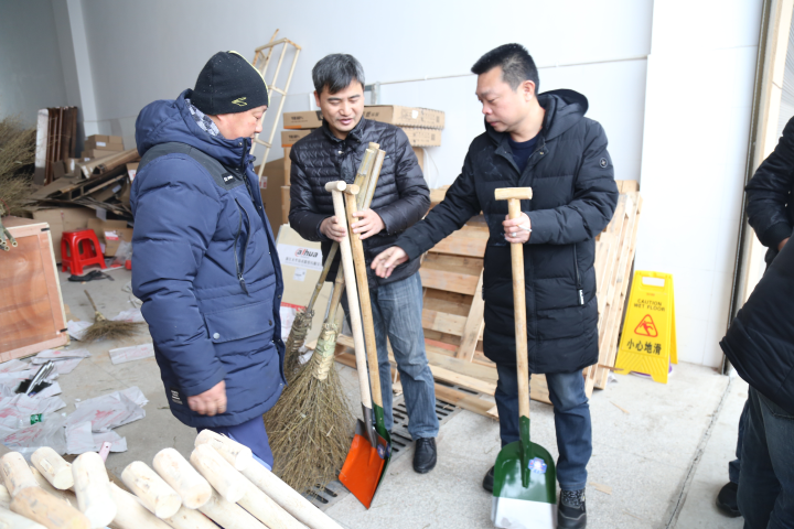 图为后勤保障部管理人员为线路车辆配备铲雪工具