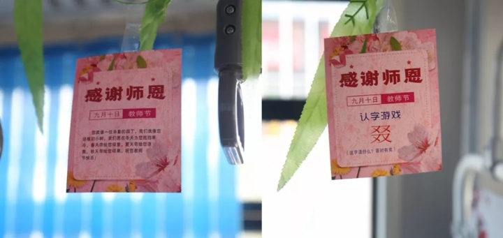 ꦰ九月份10日幼师节,一艘47路公交路线车内挂着的生僻字和幼师节祝福的话卡片盒抓住了司乘人员的安全们的要注意。