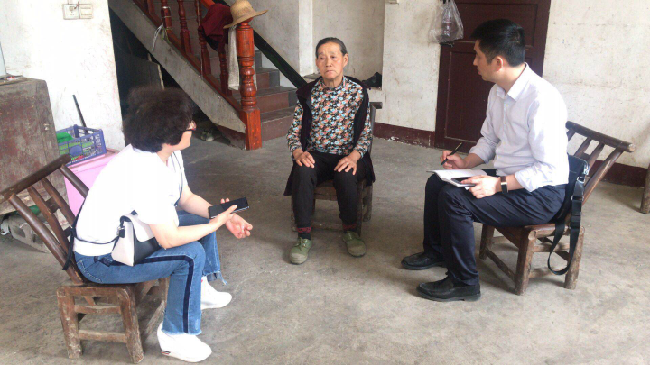 图为有限公司监事会成员长沈小平(右)、商会CEO皮建宏(左)与贫困县老百姓温柔沟通