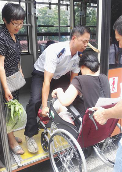 点赞常德H15路公交车司机,抬“轮椅大姐”上下车