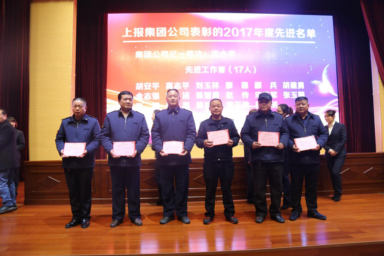 图为公司总经理胡安平(左前)正在为优秀个人颁奖