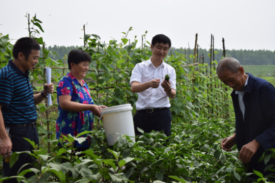 图为品牌董事局长沈小平(右二)真正怎么查看农村空间站椒种值事情
